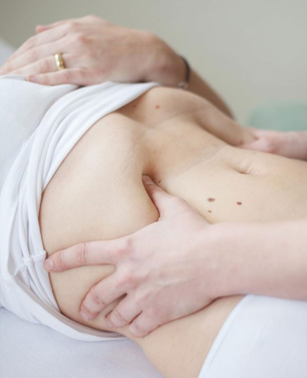 Die Osteopathin untersucht verschiedene Strukturen im Körper, wie diese zusammenspielen und wo es Störungen gibt.